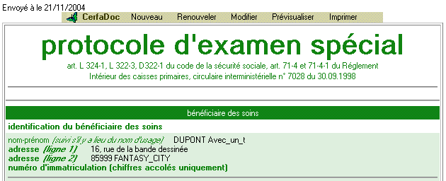 CerfaDoc permet d'éditer des formulaires directement depuis les logiciels médicaux HelloDOC et AlmaPro en utilisant les données du dossier patient (ou en version autonome). Les données entrées dans les formulaires sont stockés dans le dossier patient (et peuvent être modifiées, dupliquées, renouvelées, exportées ou simplement consultés), les données peuvent égalament être ajoutées à un PDF servant de base puis imprimées. Il est ainsi possible de réaliser intégralement des formulaires papiers (ex formulaires CERFA), tout en gardant une trace informatique. (Les formulaires sont décrit par des fichiers textes.). Mais CerfaDoc permet bien plus aussi ...