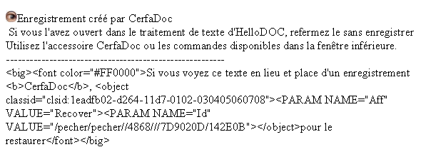 l'appel de l'accessoire CerfaDoc (il peut parfois être plus rapide