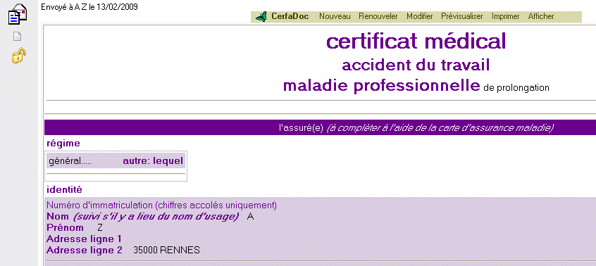 formulaires (arrêt de travail par ex) évitant une resaisie