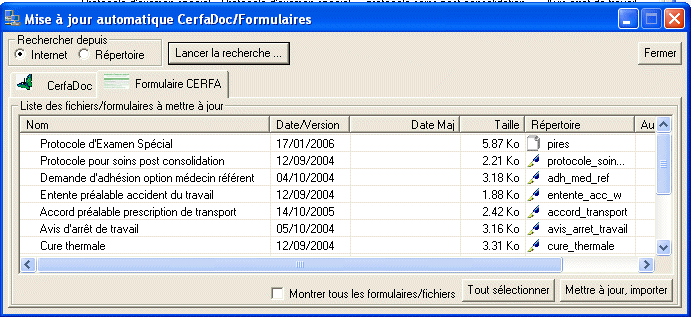 Une fonction de mise à jour automatique est intégrée dans CerfaDoc