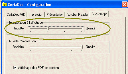 Lorsque l'on utilise Ghostscript, il est possible de régler le compromis entre la qualité d'affichage des PDF et la rapidité.