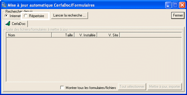 Pour mettre à jour un poste non relié à Internet, il est possible d'utiliser le pack de formulaire proposé sur la page de téléchargement
