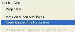 • Selectionner le pack de formulaire, soit créé par la fonction "Créer un pack de formulaire", soit téléchargé depuis la page de téléchargement