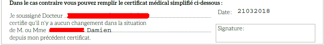Ce formulaire introduit la possibilité de remplir uniquement un formulaire médical simplifié, dans le cas d'un renouvellement où rien n'a changé (pas d'évolution du handicap)