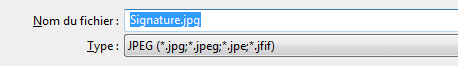 Cliquer sur "Enregistrer" sélectionner "Fichier JPEG" puis saisir "signature" (ou un autre nom), et enregistrer le fichier dans "Mes images" par exemple