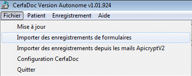 Lancer CerfaDoc Autonome et sélectionner "Importer des enregistrements de formulaires"