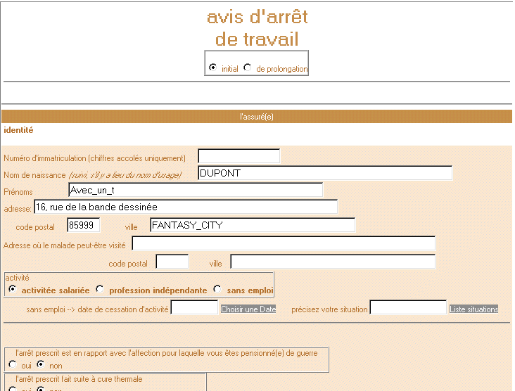 Avis d'arrêt de travail